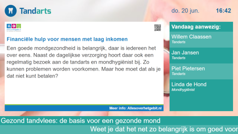Met Wachtkamerschermen® voor tandartsen, mondhygiënisten en orthodontisten bereikt u uw patiënten met praktijk- en mondzorg-gerelateerde informatie.
